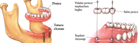İmplant üstü protezler: Bu tarz protezler sabit ve hareketli olmak üzere ikiye ayrılır. Sabit olanlarında implanttan destek alınarak yapılan kron veya köprülerdir. Hareketli olanlarında ise kemiklerin yetersiz olduğu durumlarda implanttan destek alınarak yapılan protezlerdir.